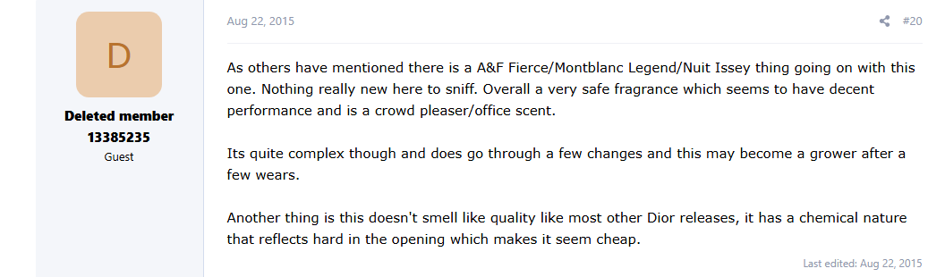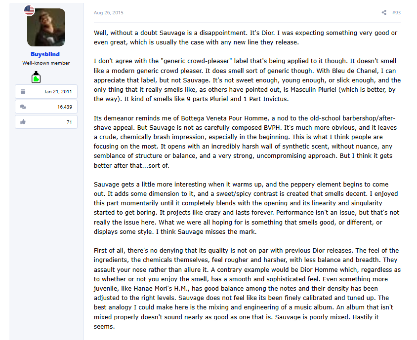 >>1905262 Ванёк, ты? Опять хуйню несёшь? >>1905222 Природа хейта саважа в его популярности и попсовости, не более. Ещё в далёкие времена его выхода и бума продаж многие эстетсвующие педрилы, включая автора предыдущего парфогайда, визжали о том, мол, как же ж так Демаши сделал ТАКОЕ??? При том что ничего толкового относительно него так никто и не написал. Тут сильно сказался синдром завышенных ожиданий фанбоев диора - от абсолютно новой линейки, видимо, как и всегда, ожидали чего-то невъебенного, амброзию, запах райского сада et cetera. А получили аромат для всех, заслуживший абсолютно невъебенную популярность и кучу малообоснованного хейта. >чем они принципиально отличаются? Все эти элексиры эу форте и т.д? Эликсир мало что общего имеет с обычным саважем, лавандово-смолянистый пряный аромат, eau forte не пробовал, но говорят что как и все релизы Кукуджаняна для диор - дичайшая дрисня на водяной основе, тоже не имеющая нихуя общего с оригинальным саважем.