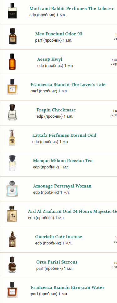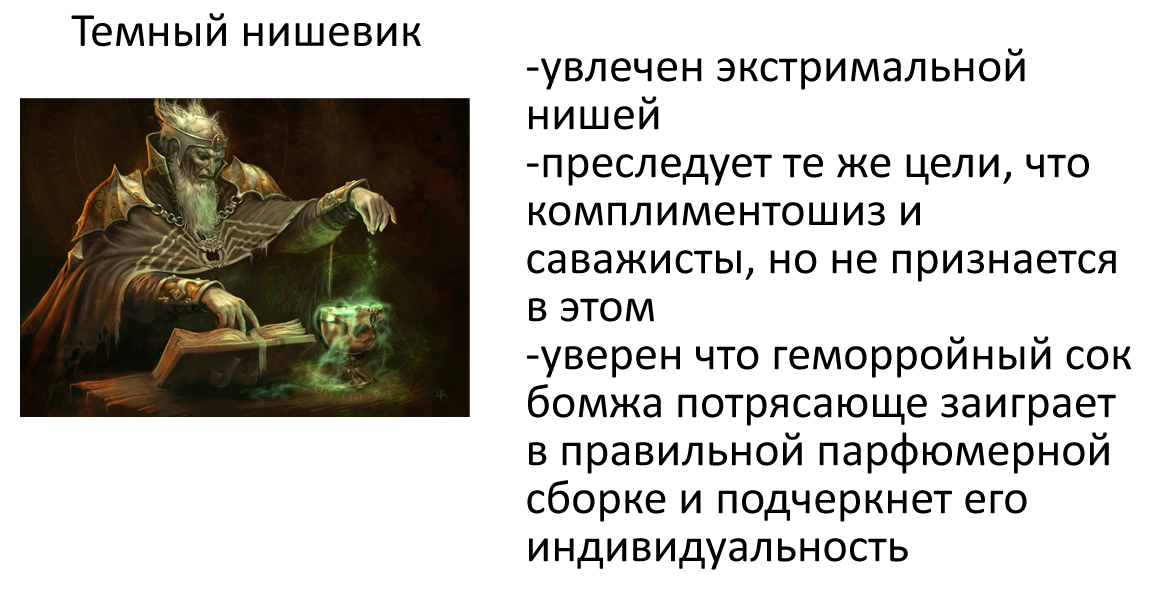 Анон, разъясни, почему ты имены эти брэнды считаешь базой в нишевом сегменте? Я реально без желания разжечь срач, просто очень интересно, я просто о нише знаю там всякие Нассоматы, Терензи, Байредо, ну то есть самые популярные, а эти названия впервые вижу, ну или просто не обращал внимания хз