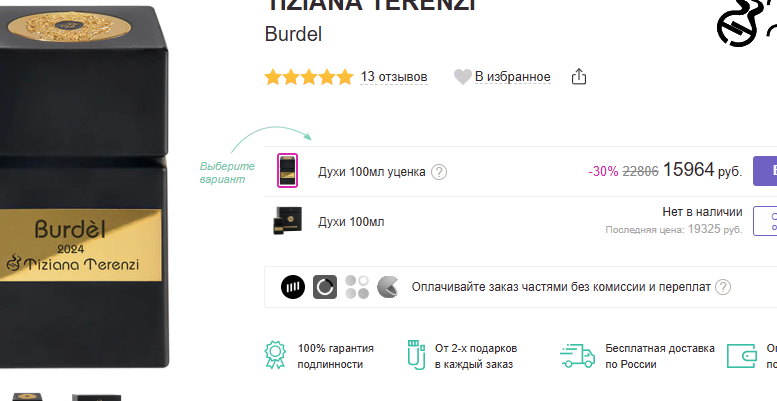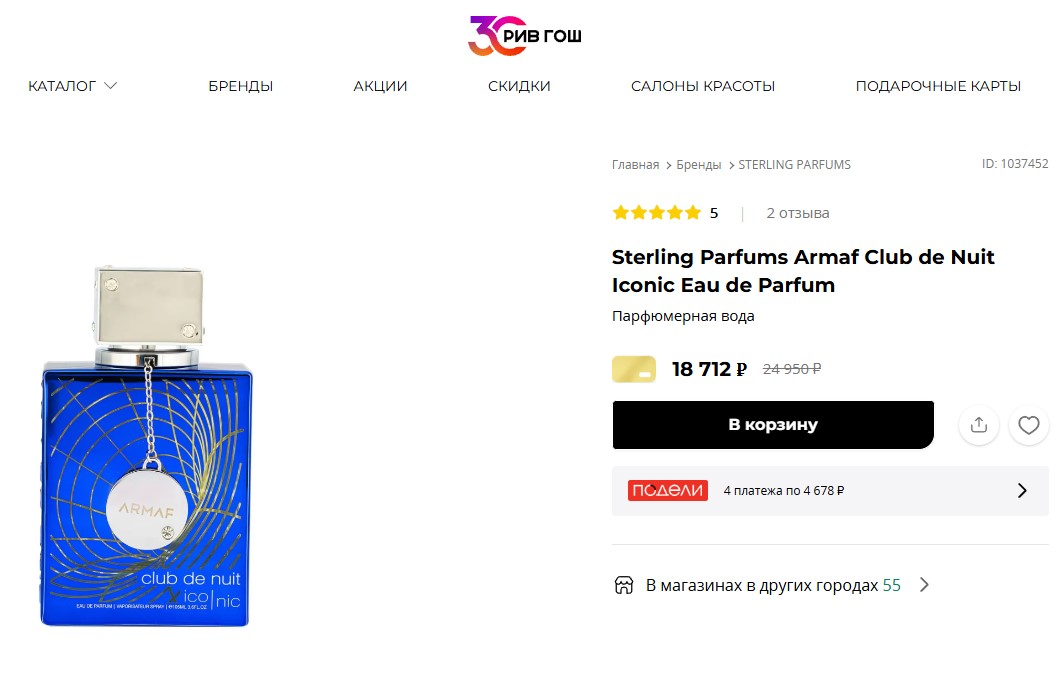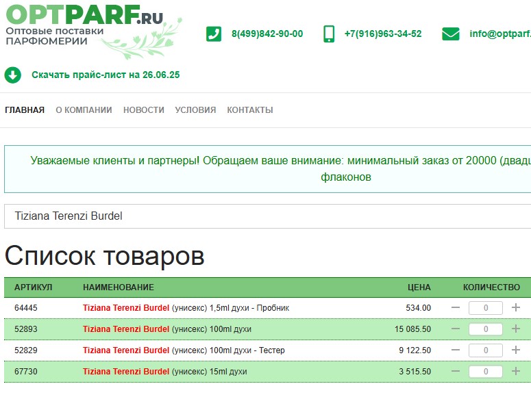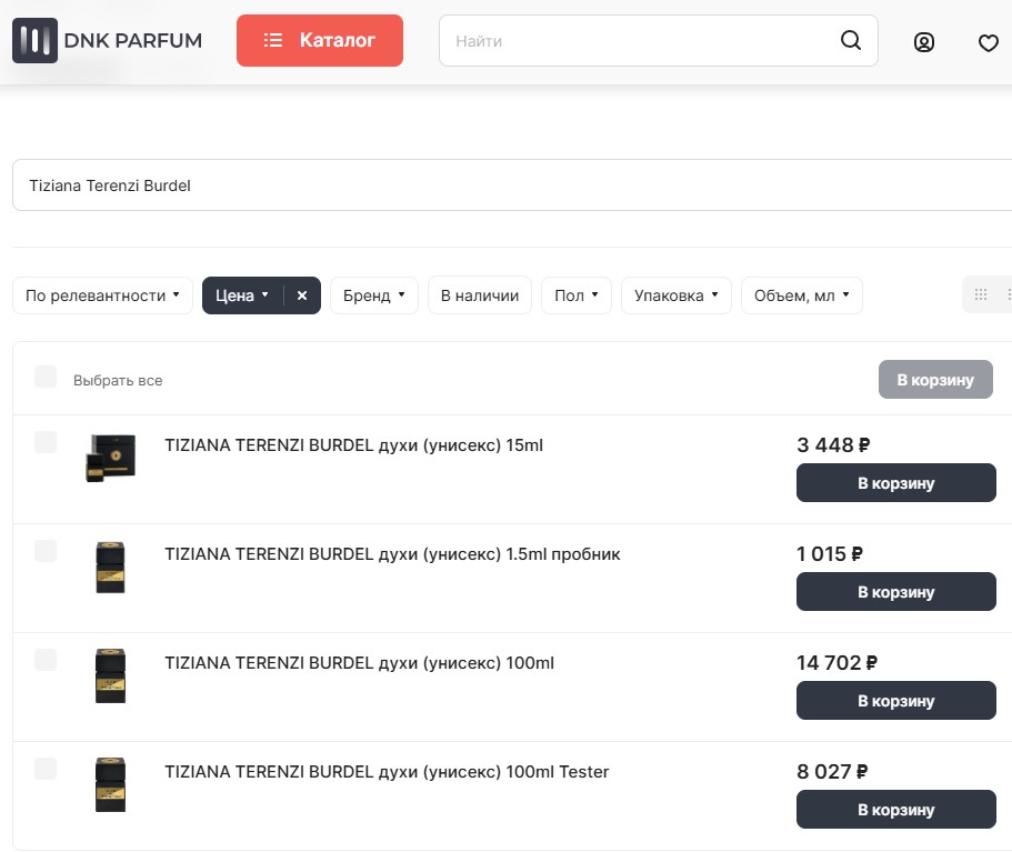 >>1906292 Не паль там, заколебали спрашивать ерунду. Это оптовый сайт, название за себя говорит, там заказ от 20к и 3 флаконов. Также смотри днкпарфюм, это похожий сайт, но цены иногда разительно отличаются.
