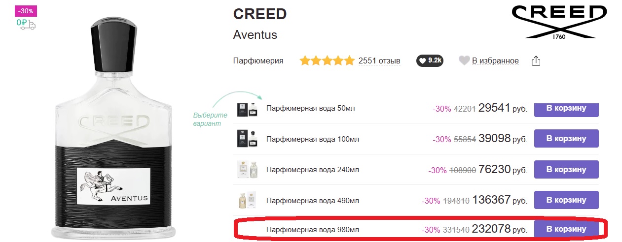 >>1906256 По-хорошему, это единственный правильный вариант для заказа. Ты покупаешь литр Авентуса - и тебе больше никогда не будет нужен парфюм, ты закроешь абсолютно все гештальты. 200к - инвестиция в будущее.