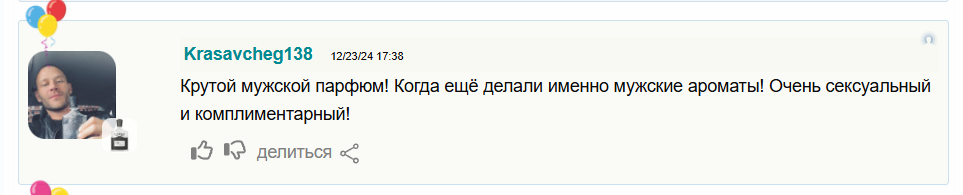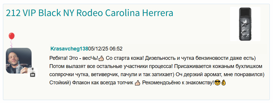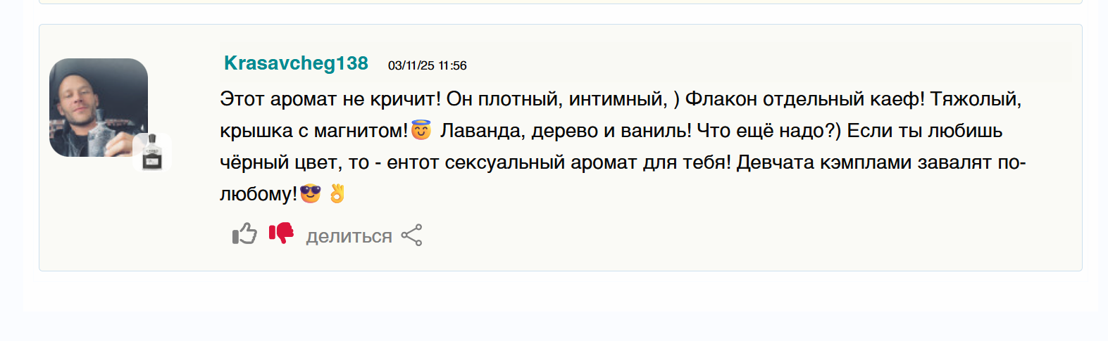 Взял клаб де нуит интенс мен - лучший клон А ВЕН ТУ СА (выпячивает глаза) А он оказался французом кек. Брал на аллюре за 3200 105 мл без задней мысли, был уверен, что приедет араб. Потому что французами как раз таки барыжит ИДБ, Рив Гош и прочие т.н. "официалы", так как на них есть разрешиловка. С этого я чего то решил, что наши серовозы со складочной торгуют исключительно арабами. А нихрена. Что можно сказать - аромат крутой безусловно, но вот со стойкостью у него как будто бы есть проблемки, в отличии от араба, который был у меня в отливанте (я специально уточнял, что это именно араб), хотя мб я и принюхался просто и не так его ощущаю. Но тем не менее - я бы выбирал именно араба, если бы был выбор, а так без проблем буду таскать - хорошие параметры в любом случае, сильный шлейф, приятный аромат.