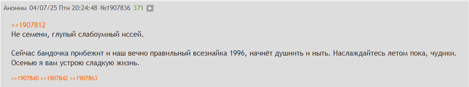 Сейчас бандочка прибежит и наш вечно правильный всезнайка 1996, начнёт душнить и ныть. Наслаждайтесь летом пока, чудики. Осенью я вам устрою сладкую жизнь.