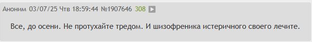 >Теперь точно все, пускай отдыхают. Ты сегодня ещё десяток постов высрешь, не прощаемся.