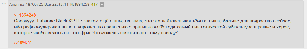 Ну и самое главное - отношения с противоположным полом. Очевидно, что Иван глубоко несчастен в личной жизни - это и зацикленность на "чадности", на том, что парфюмерия что-то там должна ему в завязывании отношений с женщинами. Это и фантазии про ол блэк клаб. И, конечно, это рассказы о том, как с ним перекинулись парой фраз рандомные зумерши - человеку хочется получить хоть какого-то внимания, о чем он с радостью делится на дваче. А всё потому, что никаких реальных достижений с тянами нет.