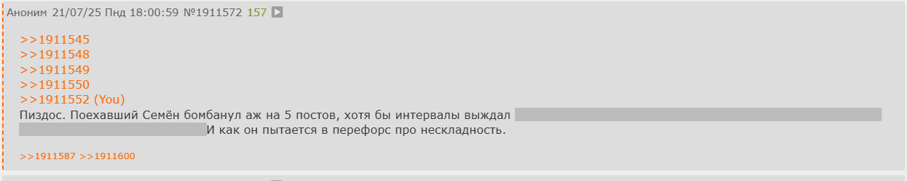>>1911260 здорова, братан, давно не слышались. Рад тебя видеть >>1911261 не понял про кого ты, я тут только по теме пишу но сука какого-то хуя с пк получил бан на постинг до 1 августа, хотя просто пару раз попросил не обращать внимания на шизов. Ну чтож. Видимо это мне кара за картинку с зеками и определения шизов в петушиный угол