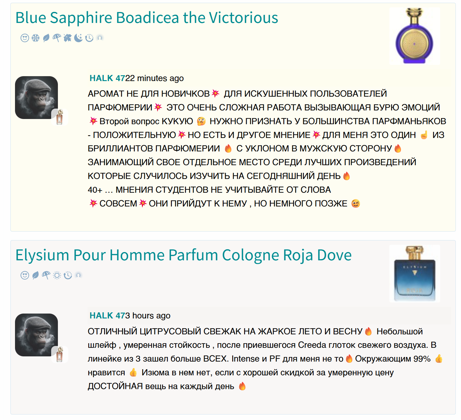 И ещё посмотрел утренние шахматы, лол. Ну это мем конечно. По мне так никаких кардинальных отличий с арабскими убийцами авентуса нет. По большому счету взяли ананасы ебучие и мох сырой. И что характерно ананасы тут не заявлены, хотя отличий с тем же Хачиватом я не услышал. Просто пропорции изменили, ноты по уровню интенсивности сдвинули и пиздец. Те же яйца, только в профиль. Порядком заебало уже такое сочетание