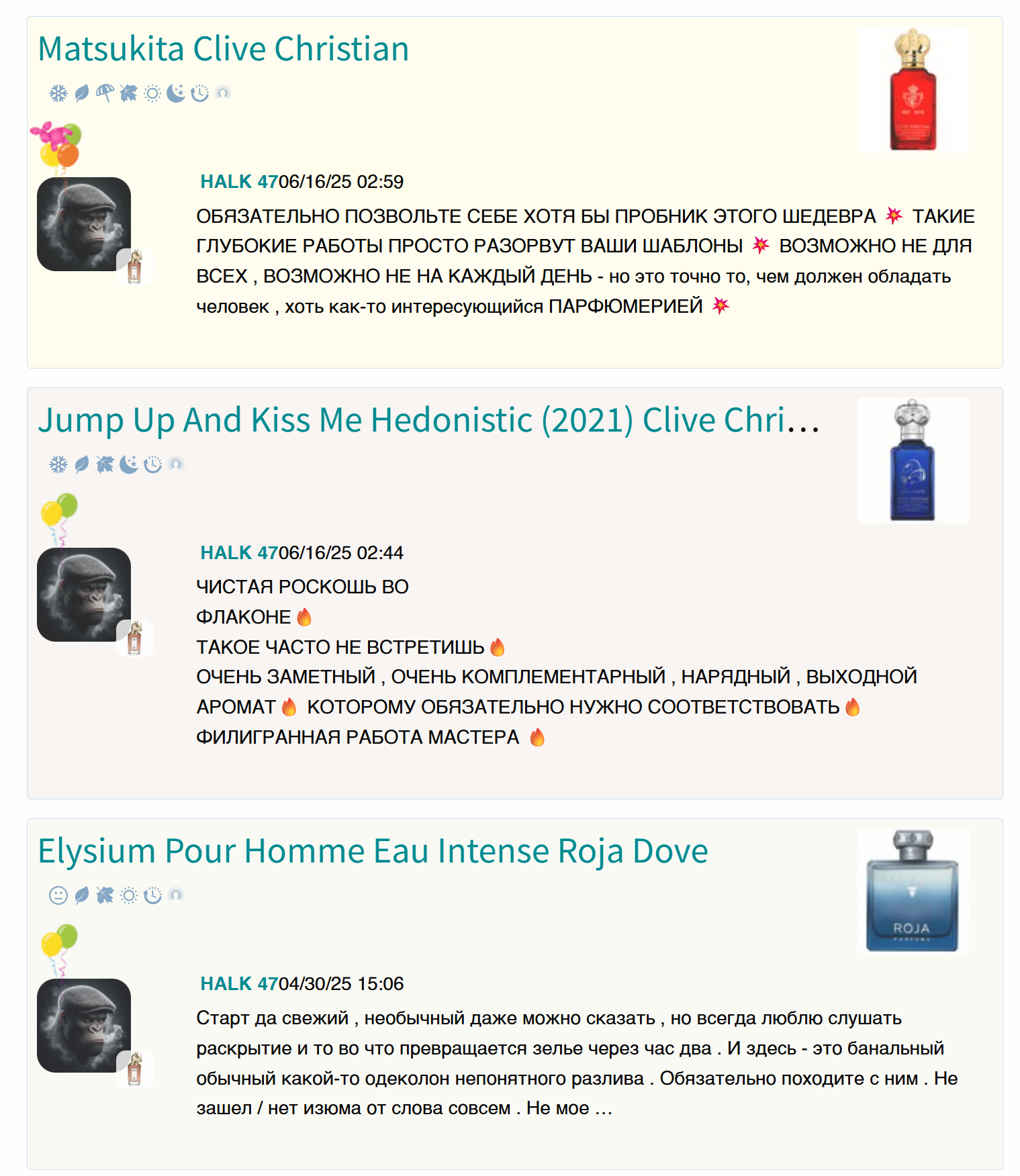 >>1912499 В парфкомьюннити тоже такие есть - фанаты рожи дава, например, которые визжат как свиньи, когда им указывают, что рожа нагло копирует разнообразную парфюмерную классику, преимущественно старые герлены - которая до сих производится, собрана лучше поделок рожи и стоит в разы дешевле. Вообще среди нишевиков из-за невежества, помноженного на беды с башкой, часто встречается иррациональная любовь к парфюмерным суррогатам.
