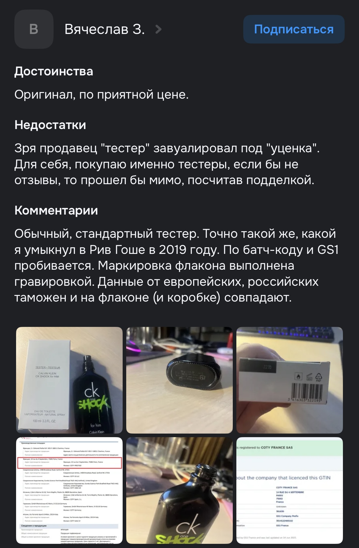 Если после получения флакона на руки остались сомнения - пахнет не так, как ты помнишь/дефекты литья или печати/стертый батчкод/еще что-то подозрительное - обращайся за помощью в одну из двух закрытых (точнее в одну, потому что в более старую тебя не примут) групп против поддельной парфюмерии вк или в тред подделок на фраге - тетки-распивщицы и прочие профессиональные гадатели по флакону с высокой вероятностью дадут обоснованный и точный ответ относительно оригинальности. >>1912521 Проанализируй через ГХ/МС жижу из достоверно оригинального и из сомнительного флакона и сравни. Надежней метода нет.
