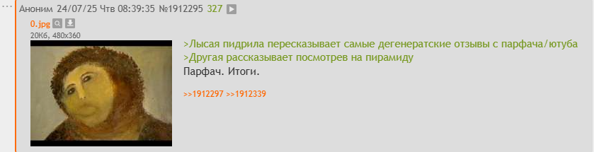 >>1913393 А ты научи как пользоваться парфюмом чтобы получать удовольствие соло и аромат не надоедал так быстро как обычно. >>1913395 Считаю что такие комменты нужно стирать как нерилейтед, будто вообще не про парфюм написано, что в принципе так и есть. Также они сами удивляются как им комплиментят их женские дефолтные водички, не понимая первопричины внимания в их сторону, а комплимент относительно парфюма лишь контекст и повод подлизнуться. >>1913396 Нет, я считаю что сыксуальных ароматов не существует в принципе. Женские красивые иногда слышу с кого-то, но пользоваться также парфюмом ради других если за этим ничего не следует смысла не вижу. Может мои ароматы, чем я пользовался многие годы, кто-то на мне слышал и считал красивым, но мне от этого ни горячо, ни холодно если как мужчина не становлюсь привлекательным для них