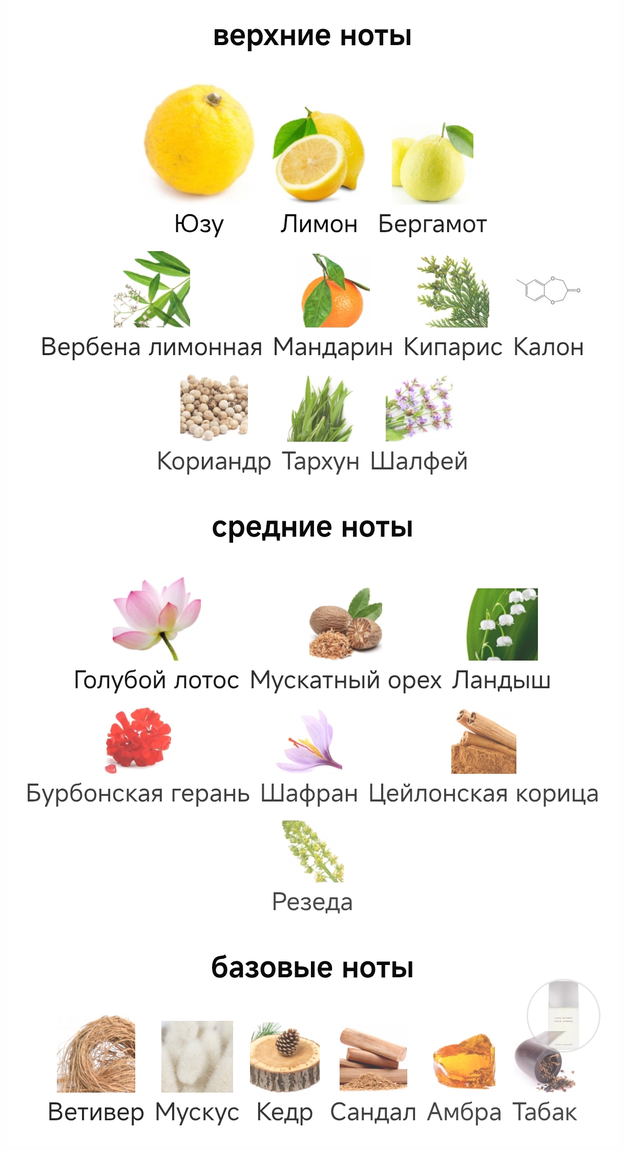 Ну в общем не получается свой свежак найти, слушал пикрелейтед опять, с бумажки звучит круто, в базе с руки так себе. Что мне не нравится? Я ненавижу лимоны. Кто-то писал в треде, что долгое время парфюм с лимонным отдушками ассоциировался с моющим средство, да, в моем случае именно так, сразу дешевизной начинает отдавать, поэтому не могу их воспринимать. Все моментально портит. Но что тут понравилось? Цитрусовая горечь, не пойму что ее даёт, юзу или бергамот? Дальше идут травы и дерево. Стало быть нужно что-то похожее, но без ебучих лимонов. Пиздец сложно. Как они по отдельности пахнут?