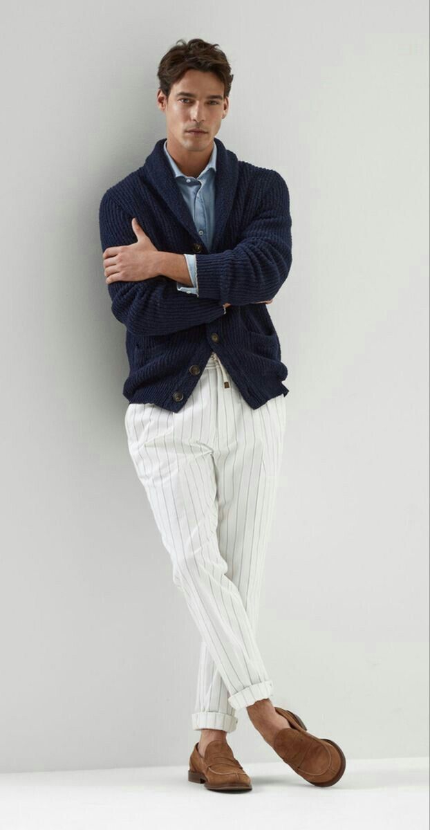 >>1917234 Ты споришь не с тем тезисом. Господь избавил меня от необходимостти носить синий костюм, и строгий синий костюм носят с черной обувью, таки да. Но 1. Черная обувь не является универсальной, напротив, коричневая сочетается проще 2. выше запрос на иной случай, там кардиган, то есть гораздо менее формальный лук, в котором коричневые замшевые челси/броги/лоферы будут уместнее Опять же. синии брюки придется заменить. потому что синий кардиган и синие брюки это почти наверняка пиздец