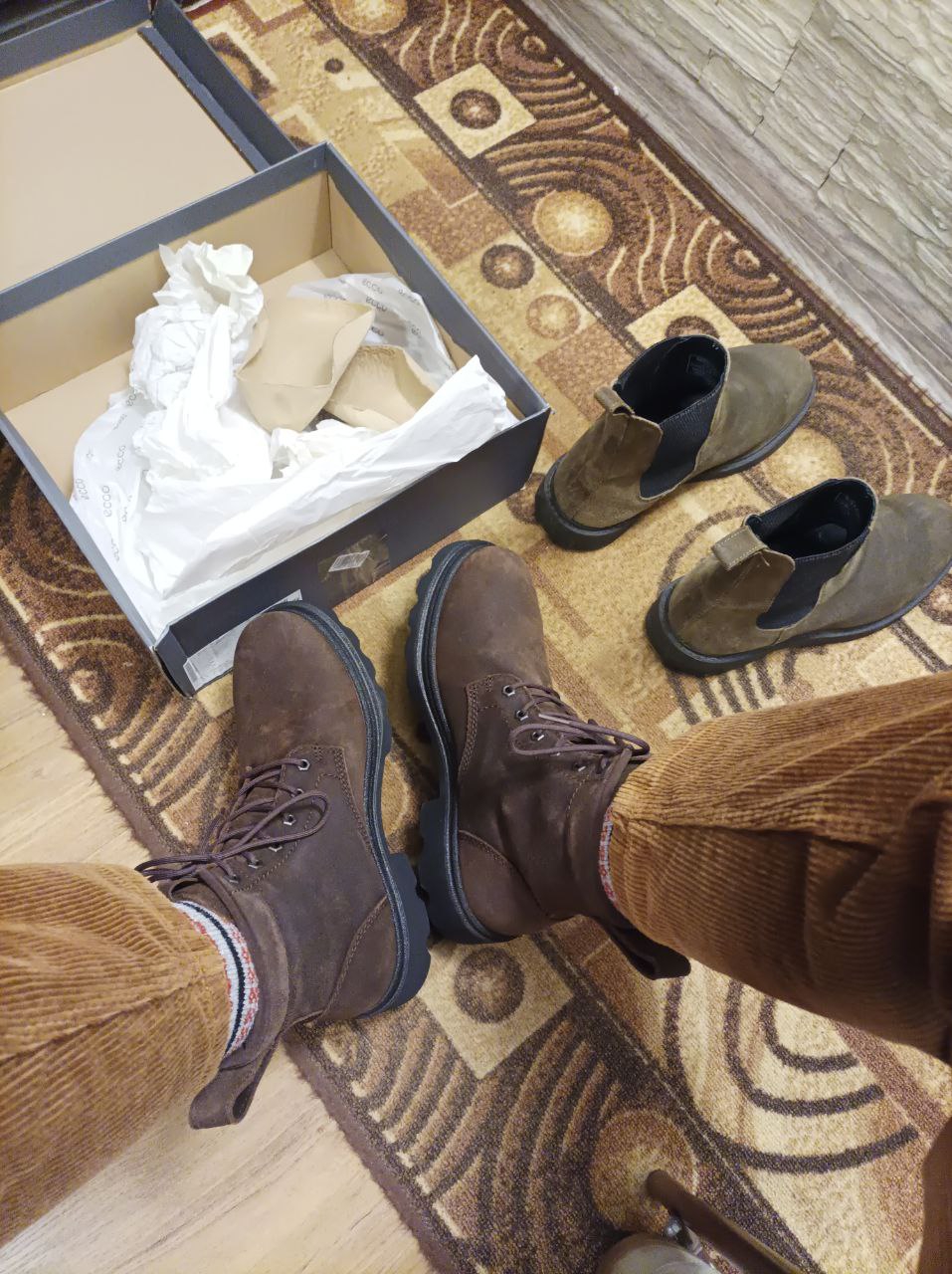 Вышел на официальную работу, и коллеги сказали, что где-то через месяц понадобятся ботинки. У меня в целом есть купленные в детстве черные туфли, но смотрятся чересчур узко. Решил первые деньги потратить на обувь. Сменка - выступление перед невзыскательными зрителями. Помню по картинке анона, что экко надо обходить стороной.