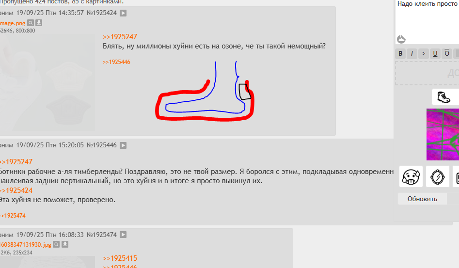 >>1927349 В России есть обувная традиция - на маркетплейсах выкладывать фотки ботинок только с наружной части, чтобы не было видно ублюдочного замка сбоку. Видимо, чтобы побольше отказов было.
