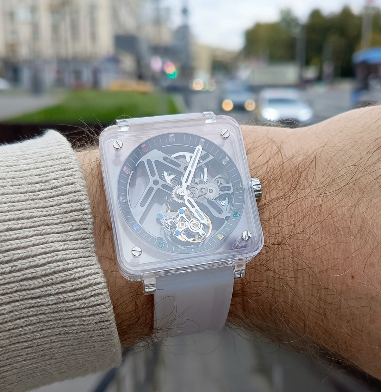 Да не очень сложно все. Franck Muller в свое время эту форму корпуса - бочка, популяризовал, т.е. был так сказать первопроходцем (потом фирма в силу ряда причин скатилась). Richard Mille перехватил эстафетную палочку приправив форму технологичностью и куда меньшей дедулайскостью. Остальные копируют с тех пор. И если хубло еще можно простить, у них хоть свои популярные оригинальные дизайны есть, то Cvstos это прям уровня Сан-Мартина что-то.