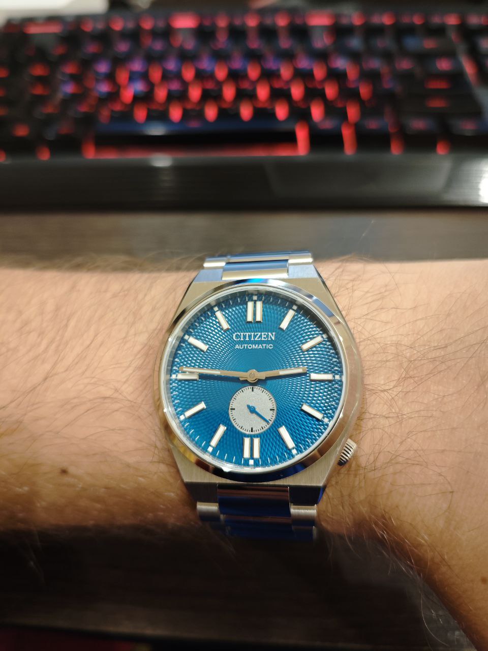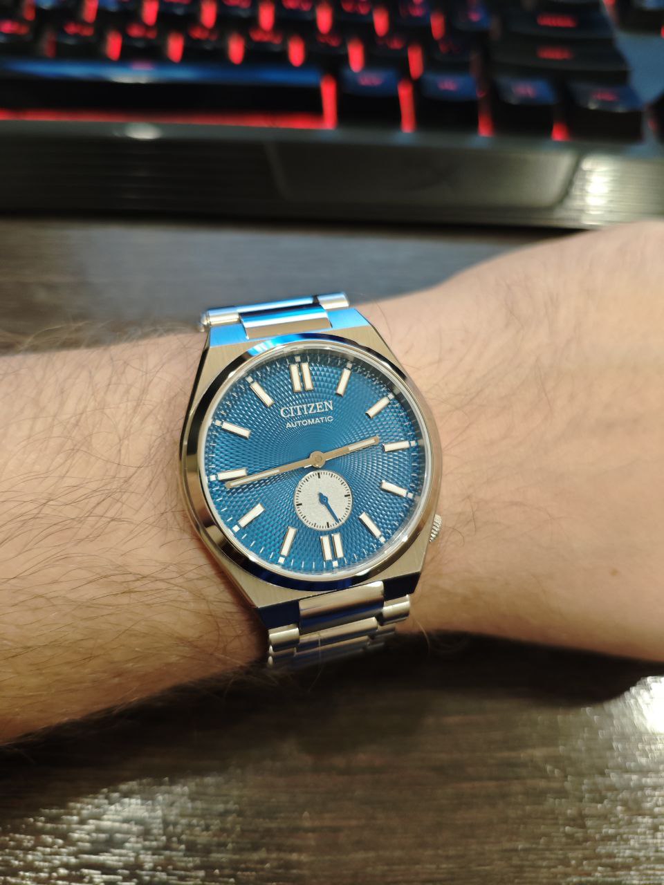 Приехали Титизены Тсуёса с Джума. Только браслет успел подрегулировать, не носил. Красивые, на руке сидят удобно. Заводная головка в плане манипуляций очень неудобная, но зато абсолютно не мешает кисти. По первому впечатлению понравились.