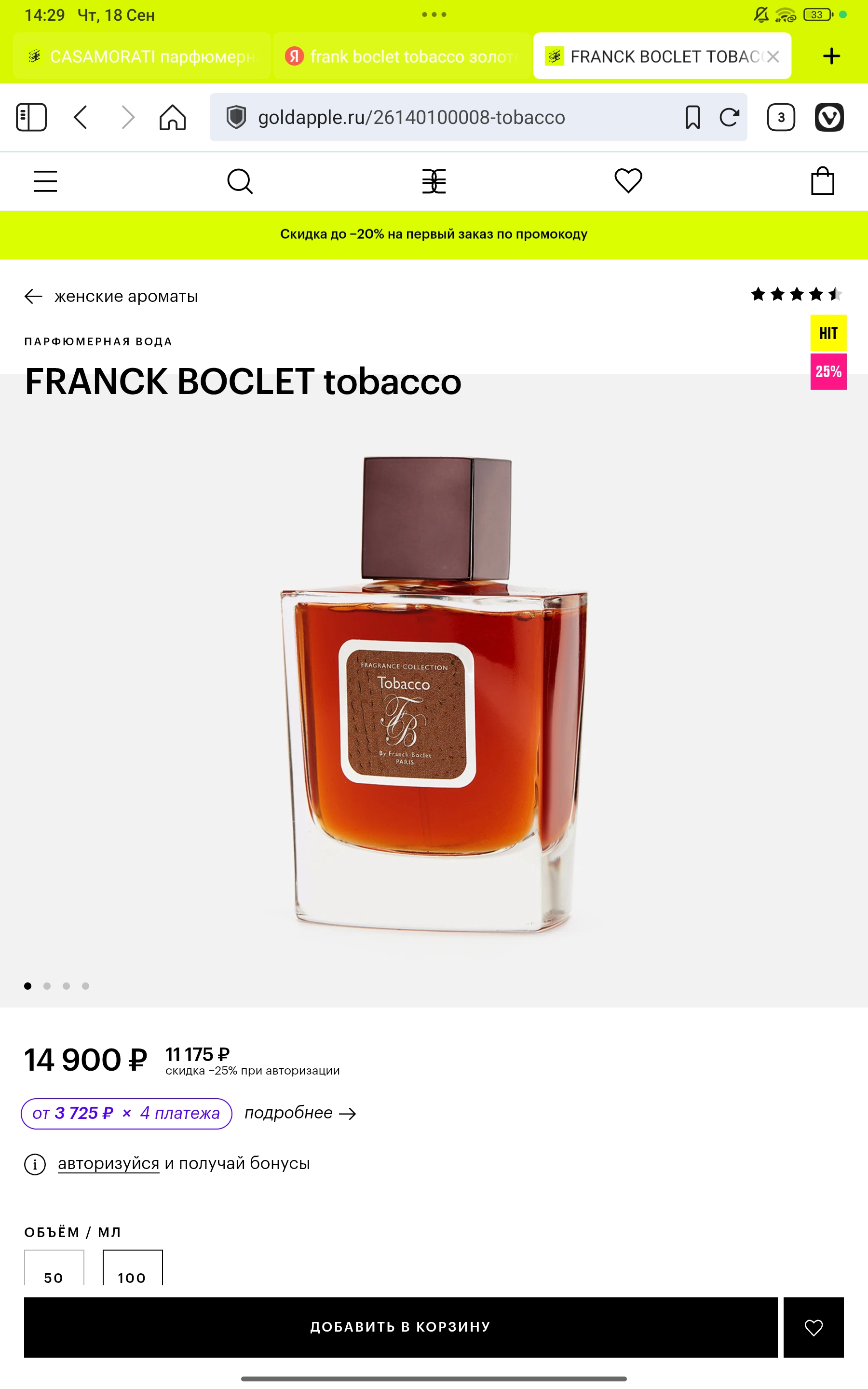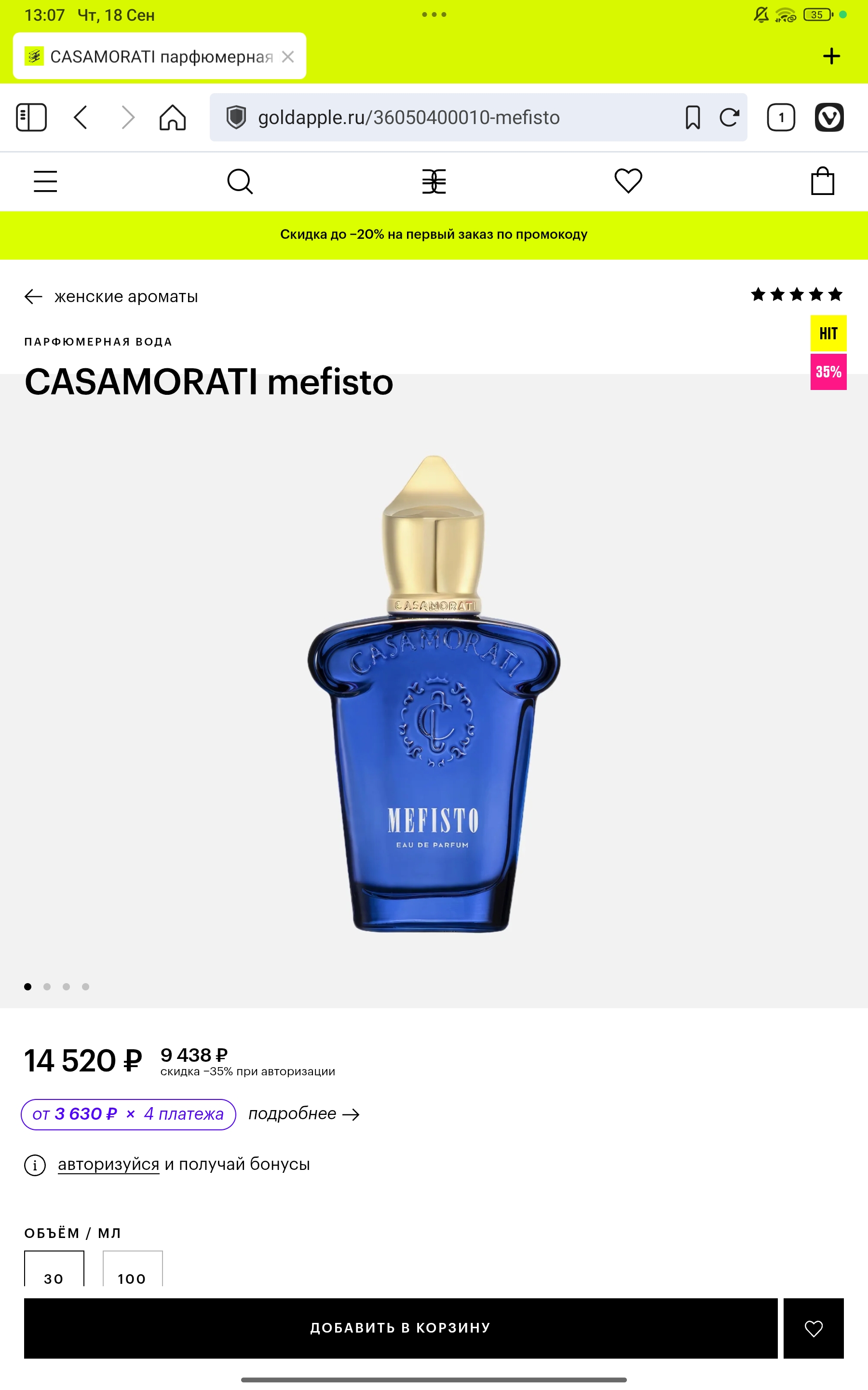 >>1924701 Нет конечно, в магазинах от 10к могут запросить за 100ml. За акции и промокоды хз, это у каждого свое. Можно тестер взять, но тоже 4-6к будет.