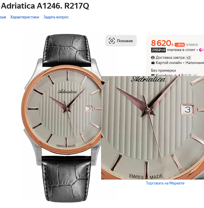 >>1926189 >swuss made какчество за полтинник грина Адриатика даже на джуме 50 долларов не стоит https://www.joom.ru/en/products/6756b3f11e527e01996374b9 Что уж говорить про магазины в РФ. Последний раз я видел адриатику около полутора лет назад в магазине в тц, она стоила больше 20к рублей.