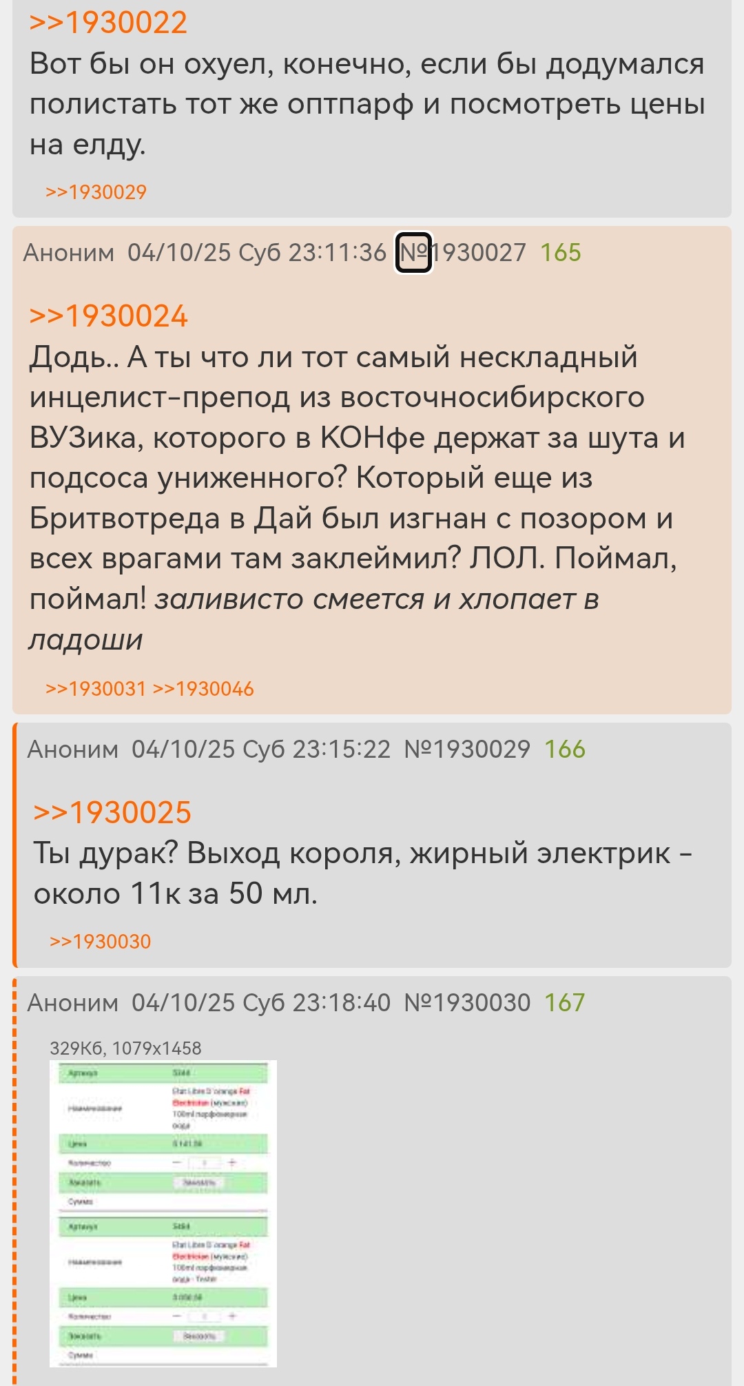 >>1930202 Опять обсераешься и домысливаешь. Где я хвастался? Я челу написал, что на Духи с ценами лотерея полная и есть смысл постоянно динамику цен мониторить. За 1890 взял сотку, да. Дешевле нигде нет. Доставка включена? Не-а, я до 5к заказ добил, и мне все бесплатно пришло. Жаль, что с кэшбеком обосрамс. Оплата переводом по СБП, тут кабанчики схитрили. И почему-то категория не Красота, а Одежда и обувь. Так бы ещё дешевле было.