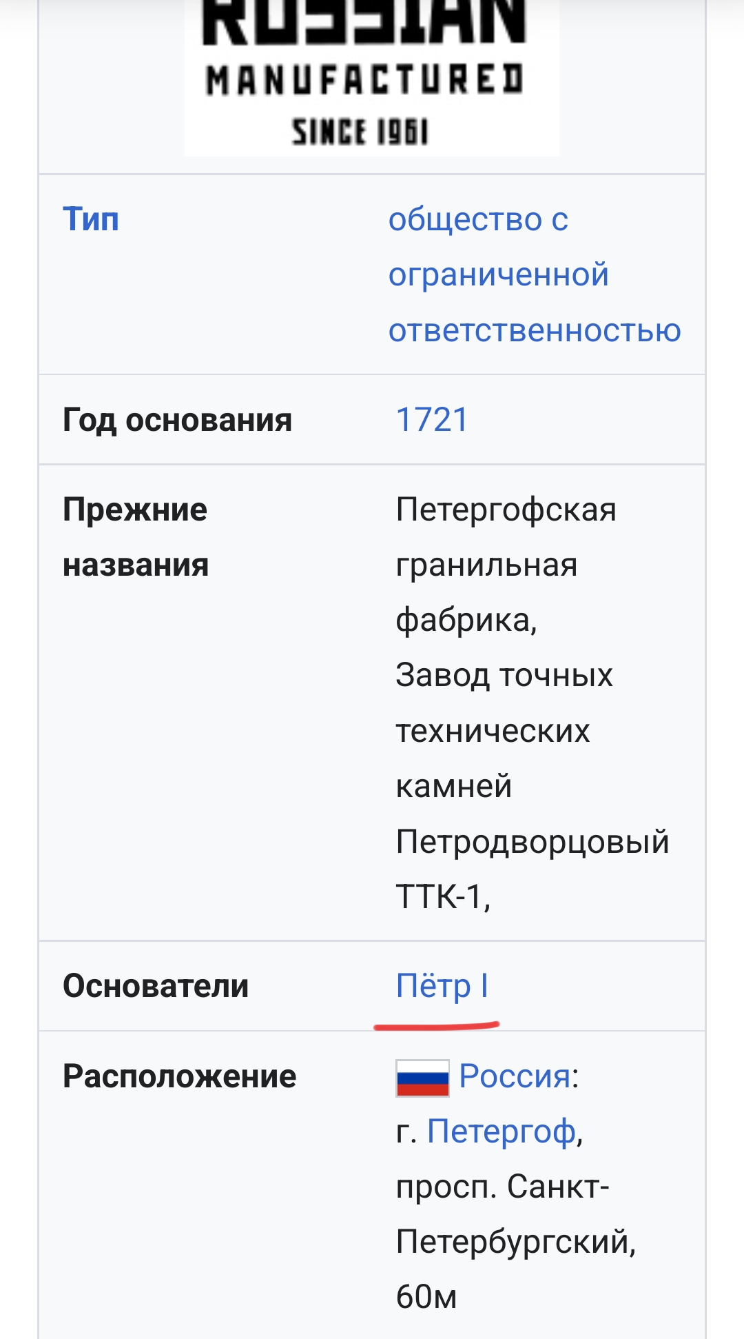 >>1929257 Ты дебил? Ракета рассказывает про завод по обработке камней, к которому никакого отношения не имеет, ставит у себя цифры 1721и считает своим основателем Петра 1.