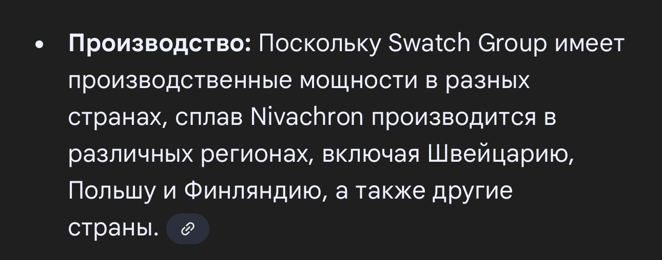 По аналогии с БМВ гуглим производство спиралей баланса. >>1929783 Да да шизик, в «Гомильтоне» используется запатентованный Нивахрон, которого нет ни в одних китайских часах. А гугл проясняет еще лучше, что делают баланс в Польше, Финляндии и Швейцарии.
