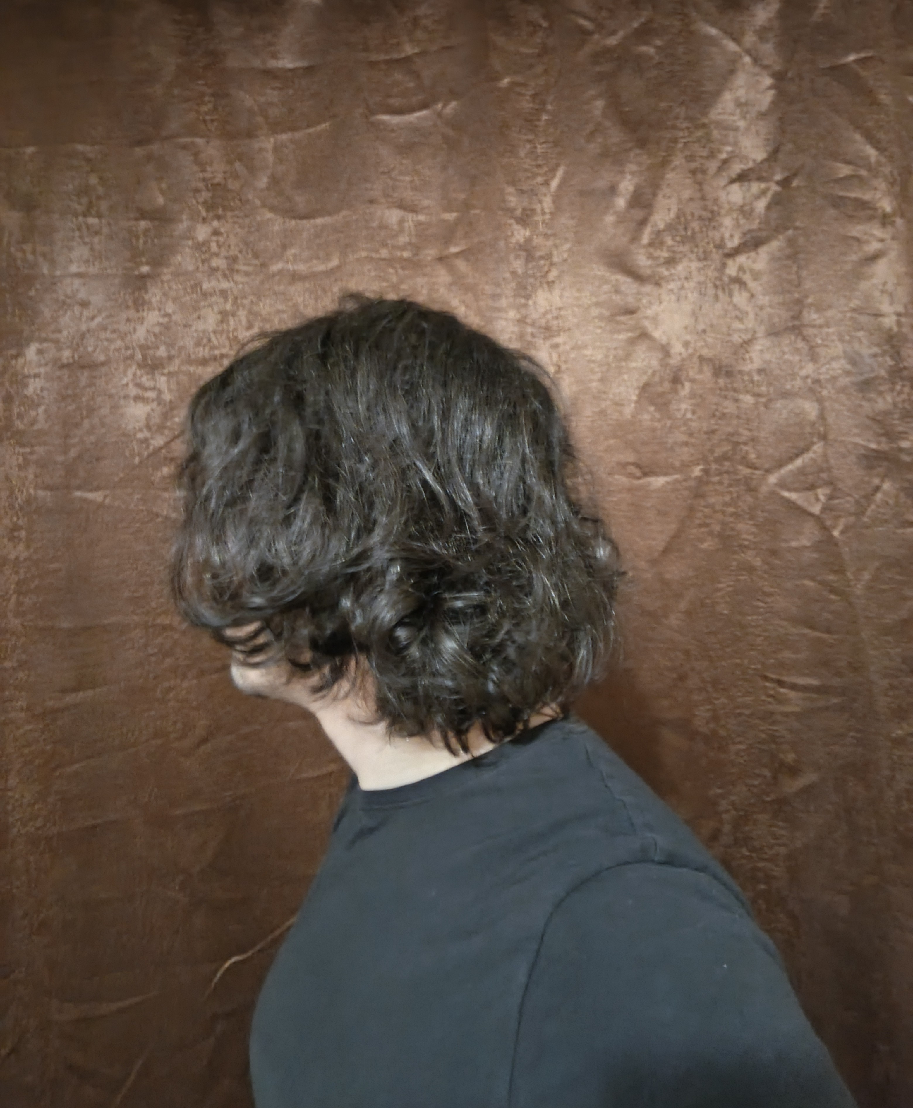 Алсо, с детства нравится ходить с длинными волосами. В детстве мамка время от времени заставляла стричься коротко, поскольку её волновало мнение других людей по поводу причёски её сына, и банально в силу собственной ИМПУЛЬСИВНОСТИ. Хоть и не под машинку, но тем не менее. И короткие стрижки тогда вообще не смотрелись на мне, да и мне самому неприятно было подстриженным ходить. Выглядел в точности как подстриженный Хидери Канзаки из Blend S, ещё и волосы (тёмно-русые) слишком светлыми казались... Комплексовал по поводу причёски и цвета волос адово. С юности стал уже добровольно стричься, однако совсем не так коротко, как в детстве, а с 2020 вообще перестал - у меня тогда не было лишних денег на парикмахерскую, а потом я вообще забил, так что сейчас у меня длинные кудрявые волосы длиной до талии, которые я забираю в хвост (^-^)
