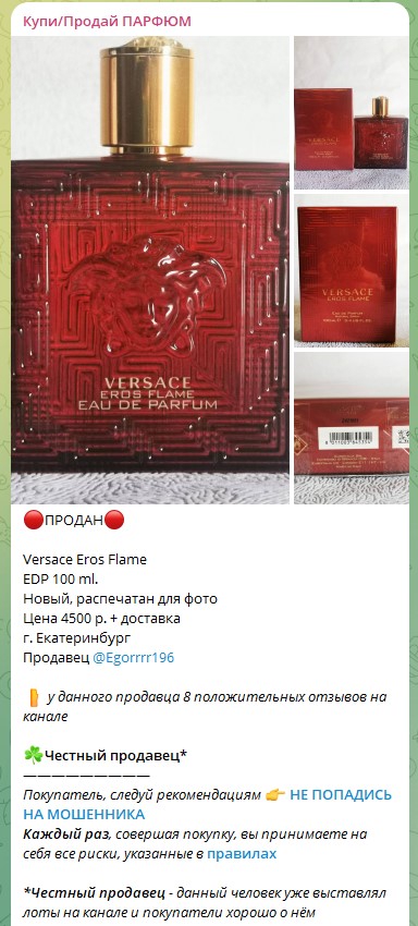 >>1936109 Ты сейчас серьезно? Ты же позоришься такой чушью и показываешь полную неосведомленность. Назвать крупнейший канал продаж мужской парфюмерии от известного крупного видеоблогера с железной системой репутации и рейтингом, куда даже простого чела со стороны не пустят выставлять объявления - мутным это надо полным дурачком и профаном быть. Там если подделку обнаруживают, что бывает крайне редко 1-2 раза в год, то заставляют разбивать на камеру, а разместившего выгоняют с канала навсегда. Сейчас все продажи в телегах в подобных каналах, все строится на репутации, а Версаче твой копейки стоит, в летуале брали штуки за 2.5-3. У чела с того времени и осталось скорее всего, если у него на фото товарная версия. Он спокойно +1.5к делает прибыли.