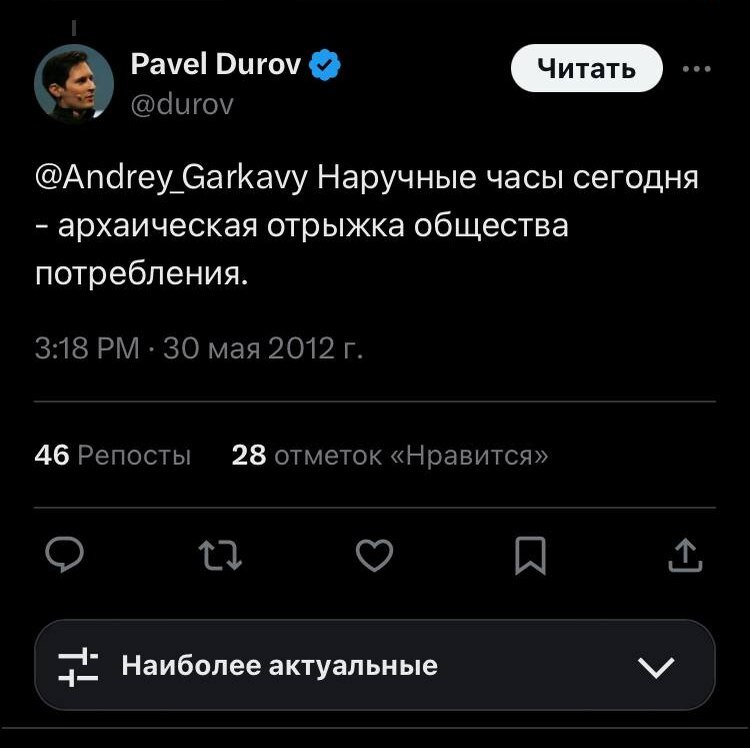 Q: Зачем вам часы? Есть же телефон. A: Красиво. Удобно. Греет душу. Пошёл нахуй.
