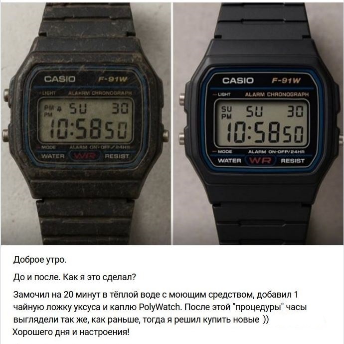 >>1938501 Между двумяCasio F-91W? Ты слабовидящий с отставанием в психическом развитии? Это одна и та же модель, только одни ношеные, поэтому зашаренные из-за дешёвого и некачественного пластика, а вторые новые.