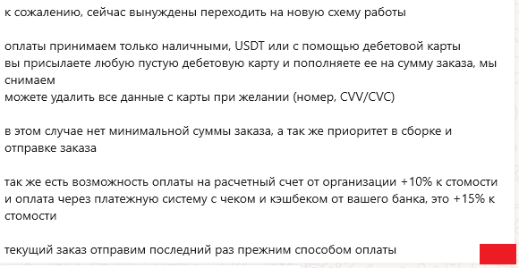 >>1939604 >>1939605 Я читал, что они на эту схему давно перешли. Сначала дают сделать несколько заказов, а потом пишут, мол, либо за нал, либо карту присылай.