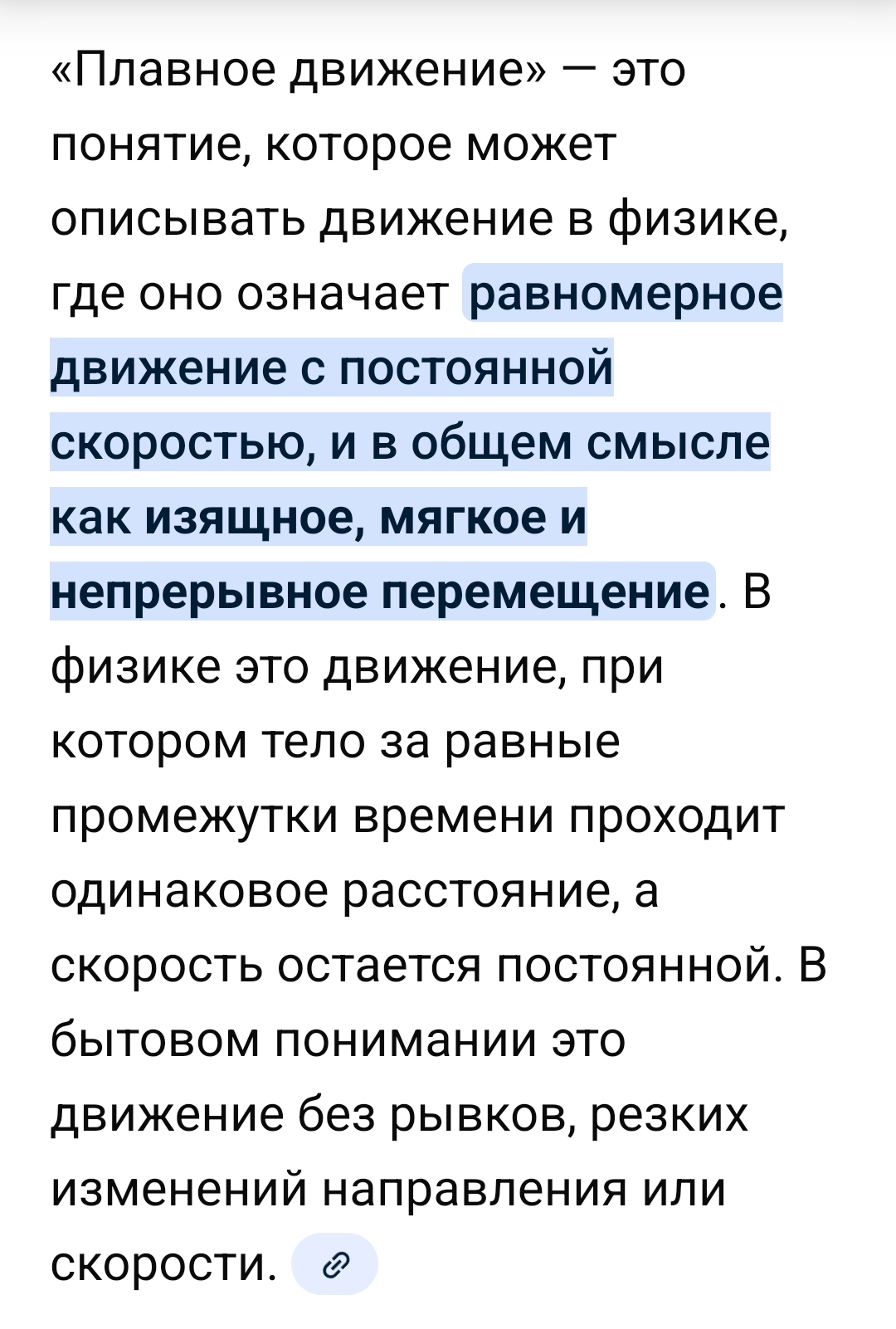 >>1940429 >проёбывался на непонимании того, как работает механика Не звезди. Это ты ничего не понял и сам в итоге признал, что я прав. И движение не плавное, и механика в метки попадает