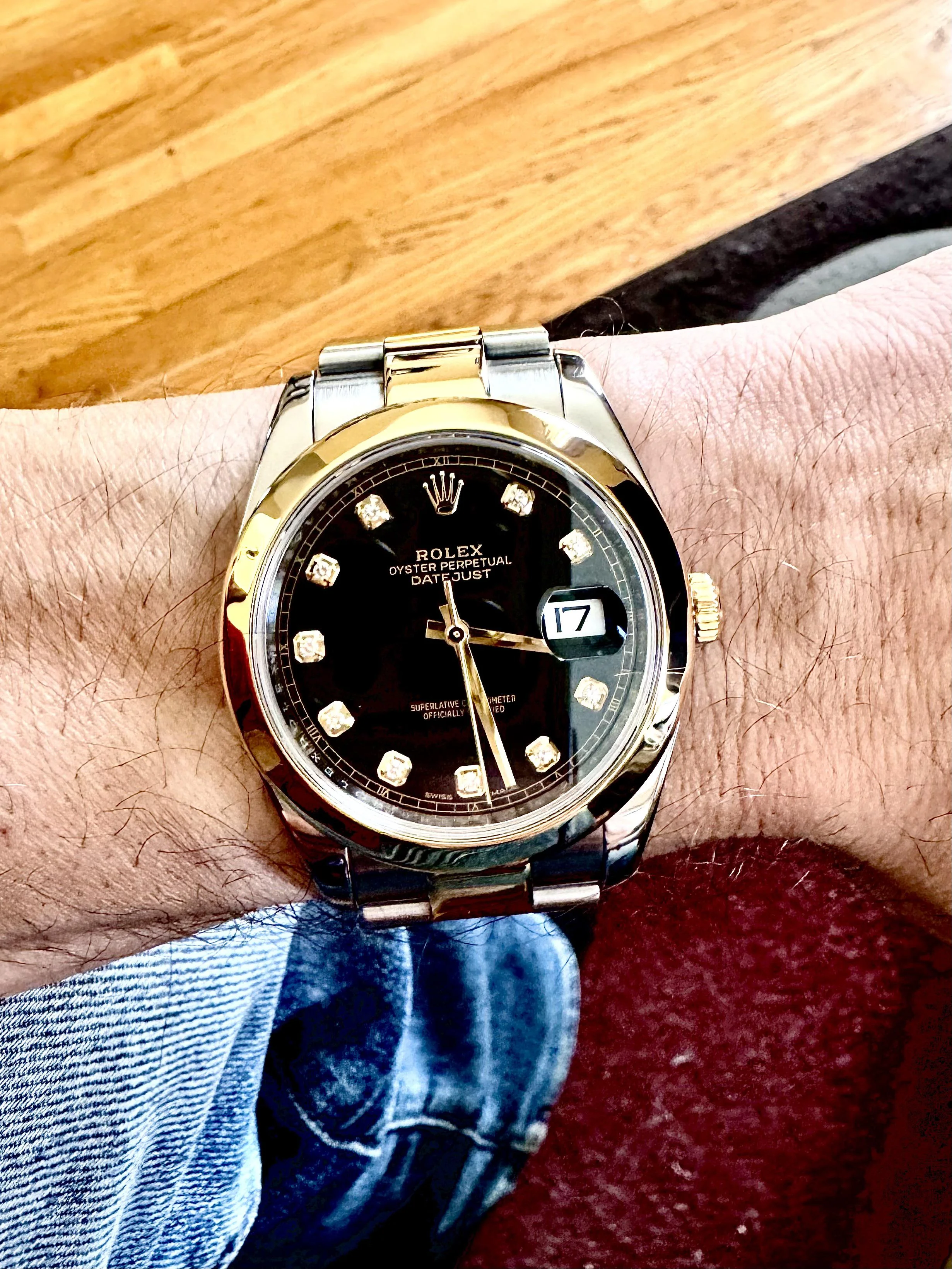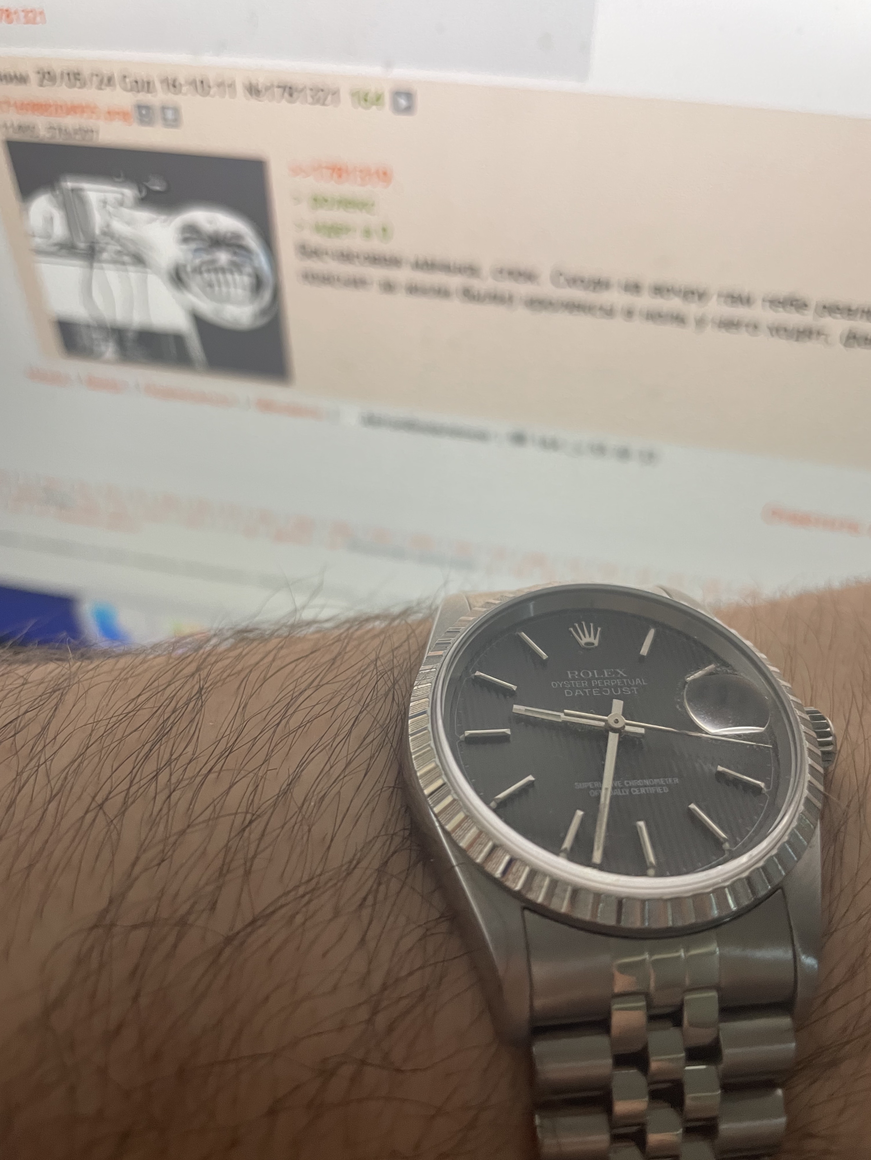 >>1940471 Может я что-то не то выкурил, но получилось вот что: ролекс мне никогда не нравился, а тут глаз зацепился за datejust 16220 с серым tapestry dial, 95го года. Причем новые мне совсем никак, 0 интереса, а этот... Ну короче, это самые точные мои часы, какой к херам ланге, честно делают +2 секунды в сутки. Очень качественно сделанная вещь и очень простая.