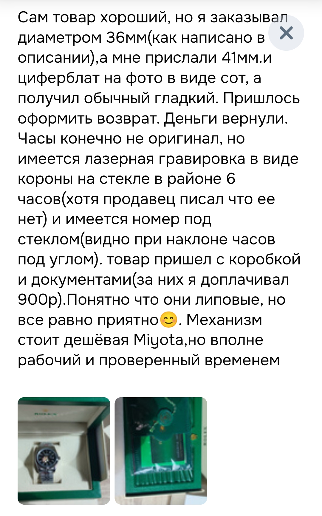>>1940512 На вочру был фееричный срач по вопросу когда вскрывать ходики, до передачи бабла продавцу или после. У покупателей свои правда, не хотят остаться без денег если продавец пали внезапно ускачет вдаль, у продавцов своя и тоже несложная. И главное ценители один другого тоньше, а вопрос различения swiss made за много тысяч долларов и пали за триста долларов животрепещущий, актуальный, господа тонкие ценители готовы были друг друга за бороды оттаскать.