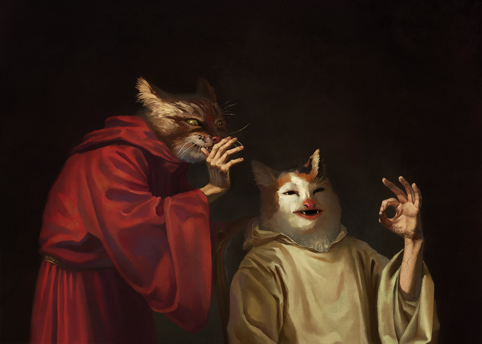 — Нас с вами надули — здорово надули! Но мы, я думаю, не желаем быть посмешищем всего города, чтоб над нами всю жизнь издевались. Вот что: давайте уйдём отсюда спокойно, будем хвалить представление и обманем весь город! Тогда все мы окажемся на равных правах. Так или нет?
