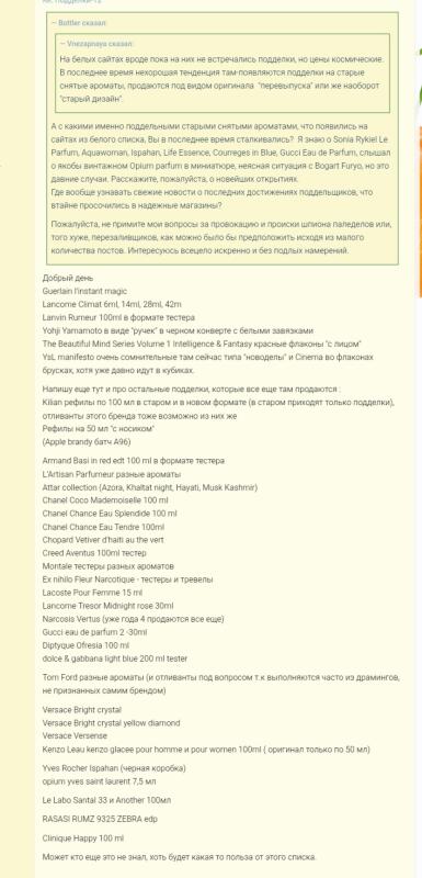 >>1949632 Кто пишет и где, помойки типа отзовика? Там и у Золотого яблока тоже паль пишут, там дурачки и отзывы за деньги декретные мамки строчат. >>1949633 > Допустим, приходит паль мне Не придет, тупо не придет и все. Ты спрашиваешь то, что до тебя спрашивали много раз и что проверено опытом. Смотри профильные форумы, на фраге есть по этой теме, смотри читай если интересно. https://www.fragrantica.ru/board/viewtopic.php?id=297548