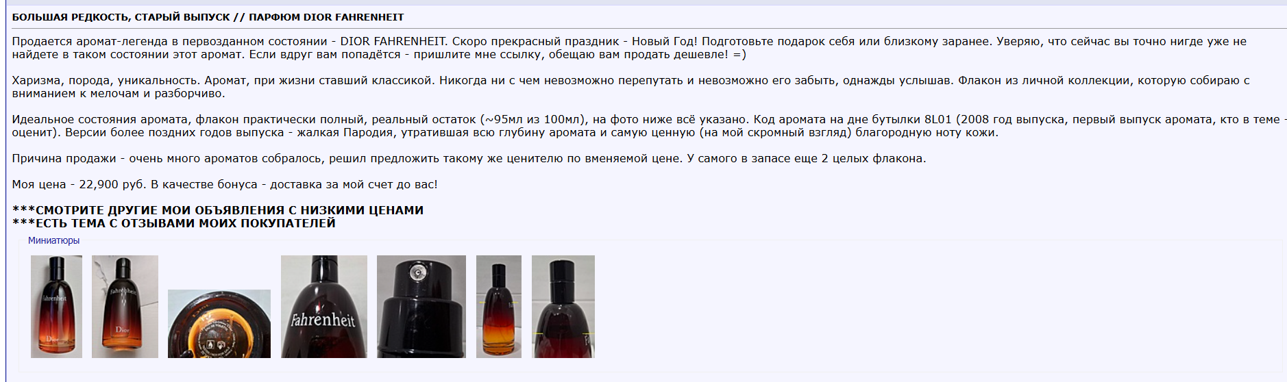 >>1949666 Да не, какой магазин. В магазине налоги и огромные расходы, в магазине Честный знак нужен, нельзя купленный в каком-нибудь Летуаль парфюм взять и перепродать, там Честный знак покажет что этот парфюм уже продан, а это нарушение. Я по тг барахолкам и авито. Имперский лес у них был много раз по хорошим ценам, в частности на рефилы 150 мл были цены 5500-6500, я распивал их. Потом рефилы сняли с продаж, давно не вижу их нигде. А в этот раз около 5000 он был за сотку, плюс Альфа-банк давал хороший кэшбек 25-30%. С кэшбеком если считать, то около 3500 он мне обошелся за некоторые флаконы, просто ограничение у банка не более 3000 кэшбека.