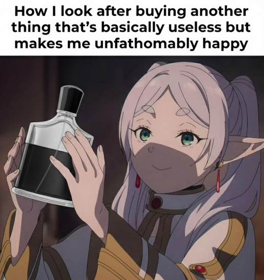 Братик, какое самоутверждение? Мы сидим в парфюмерном треде. Не иметь возможности купить хотя бы 1 колбу базового фрага за 10к - ну о каком тогда парфюмерном увлечении можно говорить?