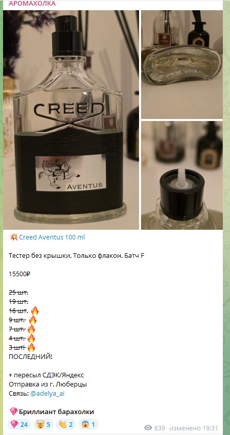 >>1954218 В днк тоже от 20к. Проверенное некуда, поверь не ты первый спрашиваешь здесь. Все перекупы там берут, народ отсюда брал, я тоже брал. Никаких проблем не будет, если не будешь заказывать какие-нибудь литровые драмминги Том Форда.