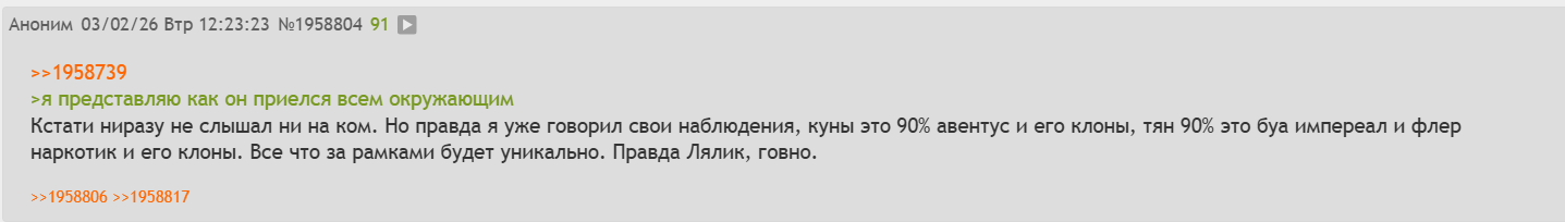 Видели у Абу в телеге пост про парфюм на 500+ коментов? Наверное при желании там можно встретить и некоторых местных завсегдатаев. Думаю, вы понимаете, о ком я.