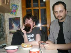 > Захлебываясь ностальхией, я упал рядом с унитазом — меня рвало так, как никогда в жизни до этого. Снова и снова фонтаны из передач 90ых: звездный час, дёргань-шоу извергались из моего горла, разрывая его на части. Всё мое тело трясло, и неожиданно мой анус самопроизвольно выстрелил огромную струю поноса. Я не мог это остановить, я ССАЛ ЖОПОЙ: это был один день детства, я ссал вонючей склизской желто-зеленой массой прямо в трусы, вспоминая дядю Сережу Супонева и заливая коврик возле унитаза. Туалет заполнился поносно-блевотной вонью, которая была сильна как дух 90ых и её можно было резать на куски словно жевачку бубль-гум.