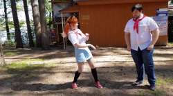 Я не очень понимаю в тутошних понятиях. Чо за косплейщицы аля пионерки? И че за кабан рядом с ними?Он оплатил им фотосессию вместе или как там? Поясните плиз, не понимаю