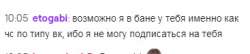>>11038903Вчера к ней зашла грабля. Напоминаю, что Пельменика ее типа ценит как подписчика и плакалась, когда она отписалась. Так вот, грабля только мимолетно помянула чуркаша - и хоба, бан.Потом она задонатила 20 р - и хоба, разбан. Как это назвать, если не шизой?