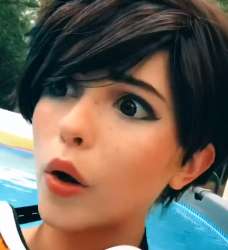 Нет. Я в целом поддерживал контрорбитерскую риторику Бонби, но до этого косплея эта риторика умудрялась ещё и хорошо выглядеть. Что Хару, что Бель были потрясающей обоймой. Это же просто жалкая хуйня. И не потому что она жирная. Ну, не только поэтому. Она намеренно сабатирует своё ТТ. Закрыла себе лицо, чтобы всё внимание на тело было сфокусировано, открыла ляжки. Вообщем, у всех этих ТТ есть лучшая версия под ту же музыку, с той же Бонби, но в лучшем косплее и с лучшей Бонби.