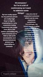 >>11442459 Тут возникли разногласия, поэтому хочу адресовать вам кое че. Люди реально разочарованы из-за высоких цен на моем патреоне. Они такие высокие, потому что косплей это очень дорогое хобби. Косплеи обходятся в 80-100 долларов (включая парик и костюм) 100-120 (включая аксесуары и линзы) цены варьируются в зависимости от костюма. Еще я делаю много косплеев по реквестам, порой выходит очень дорого. К примеру, мой будущий косплей мерси стоит 1к, и это как бы очень дорого! Извините за такие цены, но вы должны меня понять. Я ценю вашу поддержку и помощь и все такое. Я очень хочу, чтоб косплей стоил дешевле но это.. аааа реально очень дорого. Типа, вчера я потратила 800 баксов на 6 костюмов с линзами, париками, аксессуарами. Постараюсь выкатить качественные косплеи для вас!