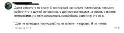 >>11543222 > Вот это чсв Согласен. Эвелина только что рассказала, как ей было плохо, какие мысли её посещали. Но нет, тебе плевать, ты только про её ЧСВ думаешь. Может, ЧСВ у кого-то другого? У того, кто не способен ни капли сочувствовать, но только лишь ругать? У того, кто плюет на эмоции другого, который даже не смотрит в ту сторону, но зато для себя требует всего.