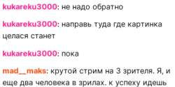 Помимо них на твоем прошлом стриме был только я и ты, всего 4 человека онлайн. Посидел всего минут 10, поэтому за весь стрим отвечать не могу. Возможно, после моего ухода зрители полились как из рога изобилия, я хз.
