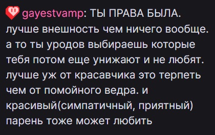 А самое сексуальное в Гале это то, какие звуки она издаёт в голосовухах. Хочу отношения с ней на расстоянии и чтоб мы 24 на 7 по телефону пиздели и она весь полный спектр этих своих потрясающих звуков издавала. Это такой кайф.