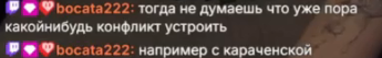 "ржавая?" "БЛЯ АХАХАХХАХ" "НЕ ТО ЧЕТА" "НУ ХЕРНЯ ЧЕСТНА)" "ТЫ КАК БУДТО РЕАЛЬНО ТЕТЕЙ СТАЛА СТАРИТ КАК БУДТА" "ПОПРОБУЙ НАДЕНЬ ПАНАМУ ИЛИ ЧТО НИТЬ ТАКОЕ" "ИНТЕРЕСНО НА ЛЫСО ЗА СКОК ЕБАНЕТ?))" "ПАРИКА НЕТУ?" "НЕ ОСОБО" "ГО НАЛЫСО?))" "А В БЛОНД НЕЛЬЗЯ ЧТОЛИ ПОСЛЕ РЫЖЕГО?" "НУ ТАДА ТОПИТЬСЯ))" "ЧЕРНЫЙ ТЕ ТОЖЕ ПРЯМ ИДЕЛЬАНО ШЕЛ" "ВОТ БЫЛ ОХУЕННЫЙ ЗАЧЕМ ПЕРЕКРАСИЛА ПЗДЦ" "НУ ПОДУМАЕШЬ 30 ЛЕТ НАСТУПИЛО РЕЗКО ЧТО УЖ ТУТ ПОДЕЛАТЬ SUBprise" "БАСЬКУ ГЛУШИ ЛОПАТОЙ"