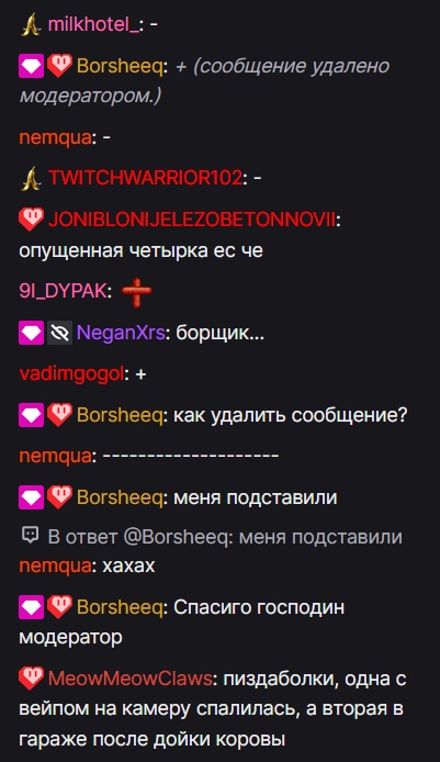 >>24904085 (OP) Есть мнение, что данная компания марамоек уже давно исчерпала себя. Сколько им всем, по 25? Это минимум. Ничего нового они уже не покажут. Будут только стареть, шизеть и жмухлеть. И искать богатый хуй. Пора бы хачепузу снова занырнуть на дно твича и добыть новых интересных личностей альтушек 18-19 лвл. Согласны? Мнения?