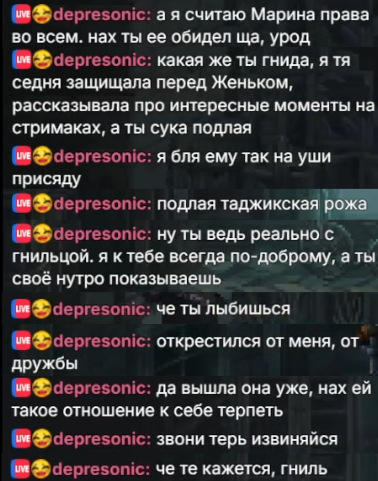 Ебать хуесосы доебались до Маринки. Че она сделала то епт? Мимикой не понравилась? Просто она живой человек и реагирует эмоционально на обсирание со стороны каких-то анонимных уебищ Сидят животные анонимно и срут такую же омежку как и вы сами, просто ваши ебла не видно, а Маринка хотя бы не стесняется свое лицо показывать и стримить