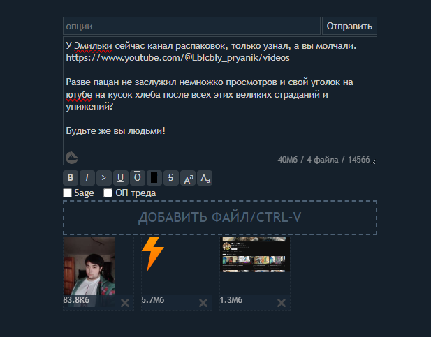 >>24742273 Я уже сказал, вперёд на поклон мочухне в дрискордик, переговорщик мамкин, раз в твоём манямирке с абушной мочой договориться можно. А я лучше проверяя реакцию чмодерастов на практике бан отхвачу. Вспомни хотя бы как лютовала фаговская моча, как только сюда переехали, один раз тред на несколько дней застрял на 450 постах и не могли перекатить из-за того, сколько постов тёрлось, и спокнулись они только когда вообще работать перестали, все треды блять до опиздюливания Бибы какой-то неймфажный пидарас сам с собой пиздел, а моче похуй. Бтв бана не было так что возможно потёрли из-за репортов местного шиза и шанс вернуться в есач есть.